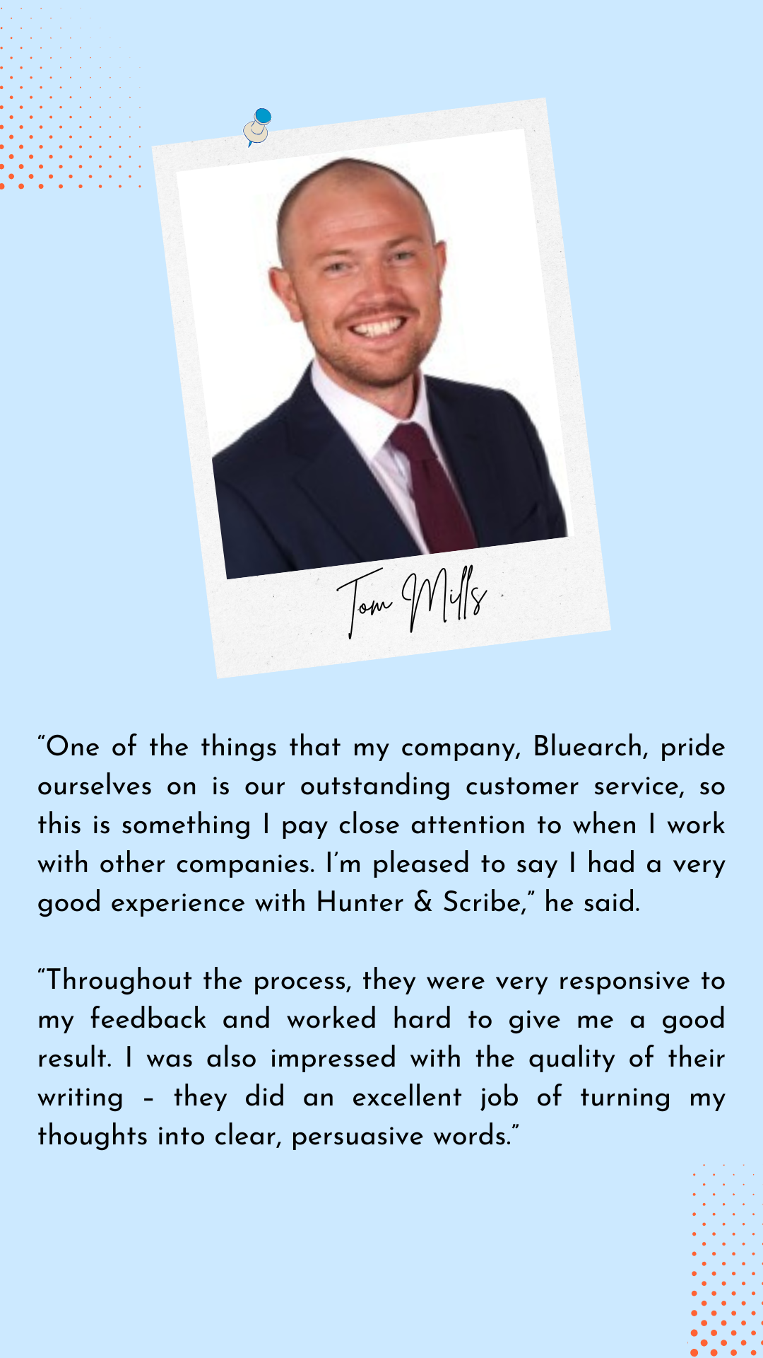 Bluearch knew they would significantly improve their chances of winning contracts if they could provide potential clients with a capability statement that illustrated their skill, experience and point of difference. Bluearch understood the importance of making this capability statement as compelling as possible, so they decided to use the services of a professional copywriter – Hunter & Scribe.