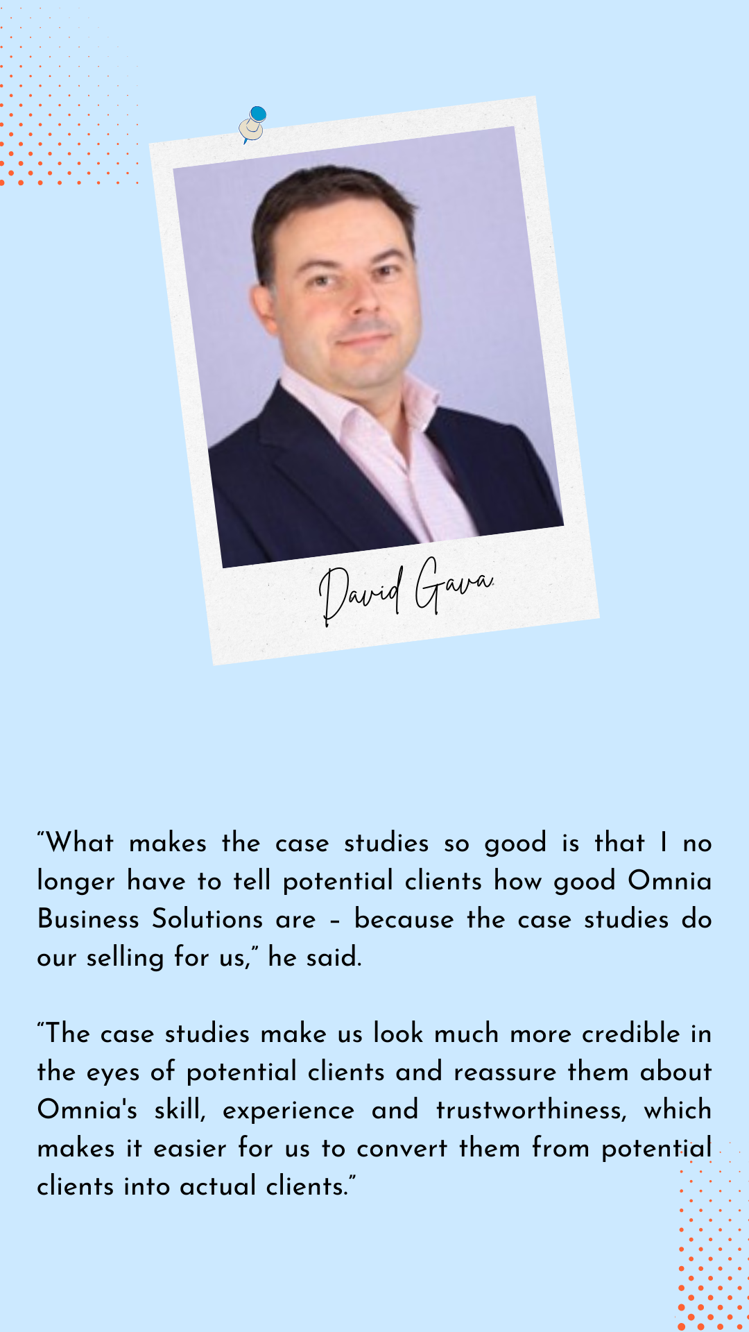 “What makes the case studies so good is that I no longer have to tell potential clients how good Omnia Business Solutions are – because the case studies do our selling for us,” he said.